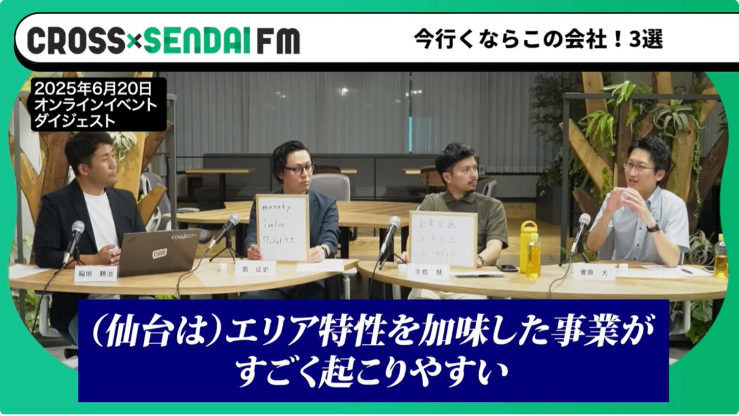 『CROSS SENDAI FM《東京脱出→仙台!? 〜仙台のイチオシ企業・働き方大公開〜》』を2025年6月20日に開催しました。