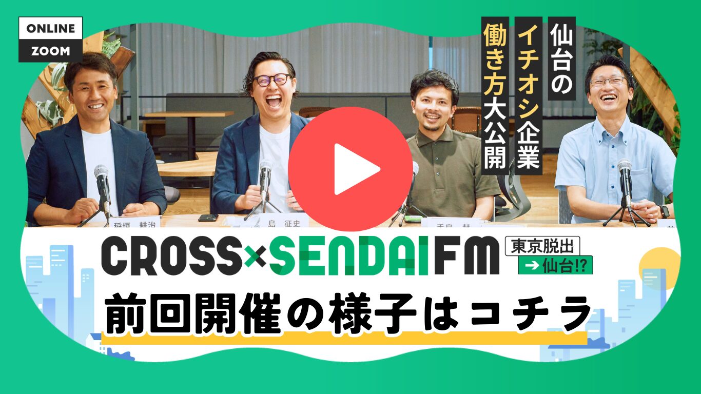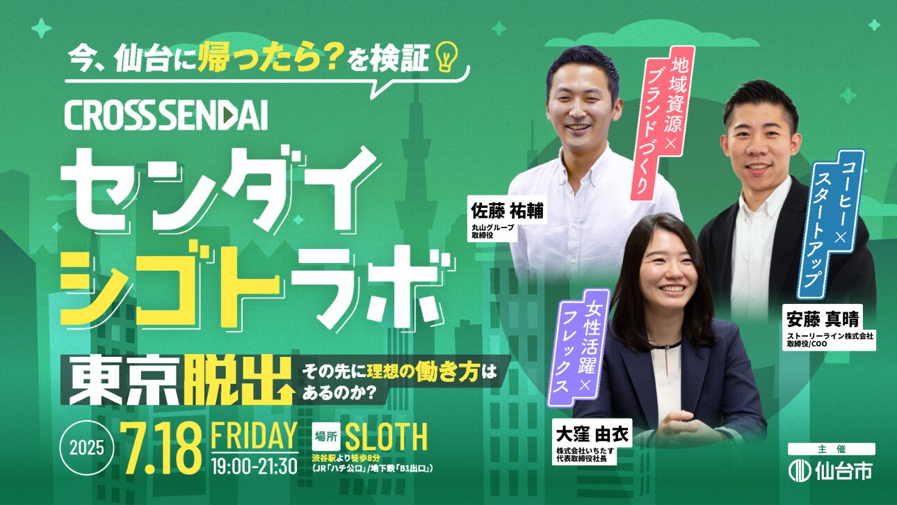 今回のイベントで感じたのは、仙台は「小さく収まるまち」ではなく、全国や世界へ羽ばたくための拠点になり得るということです。自然に囲まれながら働ける豊かさと、挑戦の場としての広がり、その両方を実感できた貴重な時間でした。