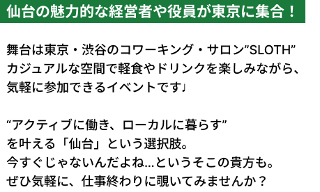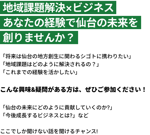 【渋谷開催】センダイシゴトラボ|今、仙台に帰ったら?を検証!地域課題解決×ビジネス~あなたの経験で仙台の未来を創りませんか?~
